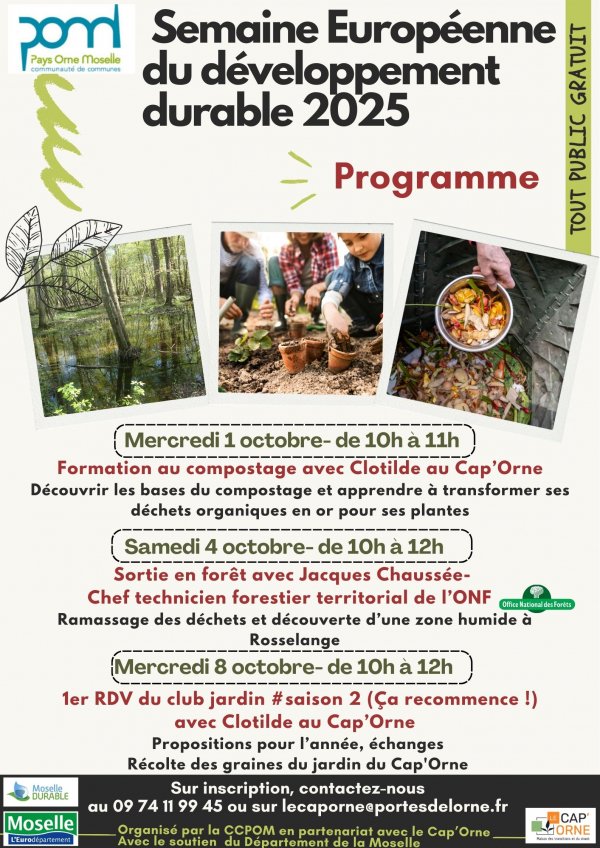 La CCPOM vous propose trois rendez-vous pour sensibiliser, transmettre, échanger et agir en faveur du Développement Durable :